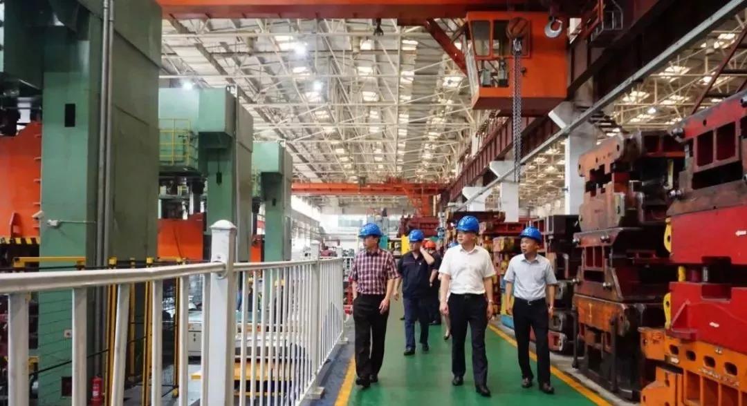 李永剛董事長陪同唐瑞勇副總裁一行參觀了小鴨精工產品展廳和生產車間,詳細了解集團技術研發、人才建設、智能制造及新舊動能轉換等情況。